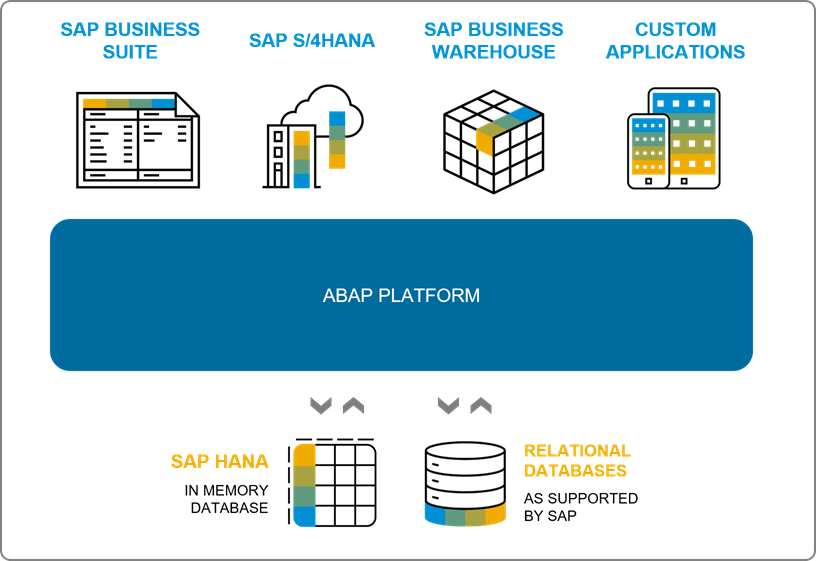 Cơ sở dữ liệu không chỉ chứa dữ liệu người dùng, mà còn toàn bộ mã chương trình của Máy chủ ứng dụng ABAP và các chương trình ứng dụng, tất cả dữ liệu quản trị, v.v. Các chương trình bạn phát triển được lưu trữ trong sơ đồ ABAP của hệ thống.