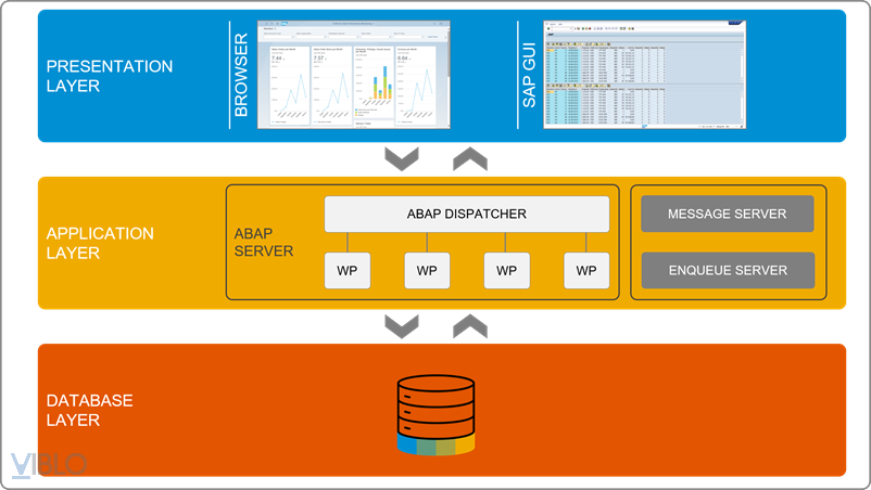 Máy chủ ứng dụng ABAP (AS ABAP) bao gồm ba lớp: trình bày, ứng dụng và cơ sở dữ liệu. Sự phân chia lớp hoàn toàn hợp lý. Trên thực tế, cả ba lớp thực sự có thể chạy trên một máy tính duy nhất.