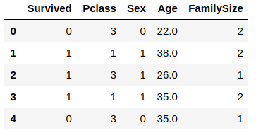 X = titanic[['Pclass', 'Sex', 'Age', 'FamilySize']].values
