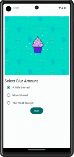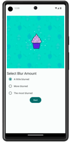 Update UI Trong file ui/BlurScreen.kt , bạn nhận được UI State từ variable blurUiState trong ViewModel và update lại UI . Trong compose BlurActions chúng ta sẽ hoàn với đoạn code bên dưới: