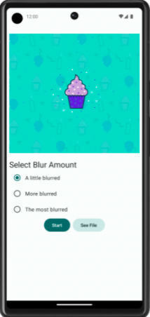 Sau khi bạn cancel work, chỉ button Start được hiển thị bởi vì WorkInfo.State là CANCELLED. Thay đổi này làm cho biến blurUiState được xét giá trị là BlurUiState.Default.