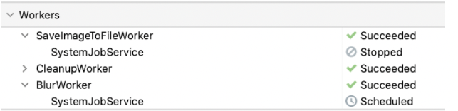 Run lại app và bắt đầu blur một picture sau đó click Cancel Work. Toàn bộ chuỗi công việc bị cancel.