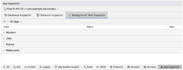 Trong Android Studio có một công cụ giúp chúng ta thực hiện debug một cách trực quan, giám sát và debug các WorkRequest theo thời gian thực là Background Task Inspector