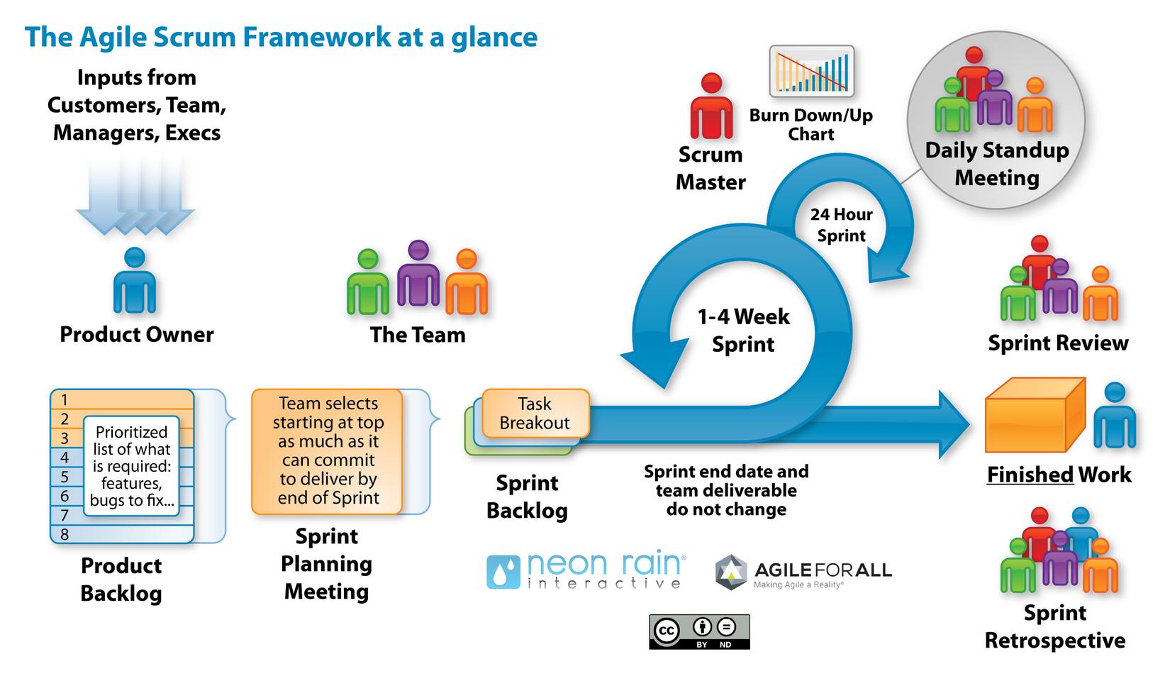 Bốn Cuộc họp: Scrum định nghĩa quy tắc cho bốn sự kiện chủ chốt (các cuộc họp) nhằm tạo môi trường và quy cách hoạt động và cộng tác cho các thành viên trong dự án.Sprint là một phân đoạn lặp đi lặp lại trong quy trình phát triển phần mềm, thường có khung thời gian ngắn (từ 1 – 4 tuần).