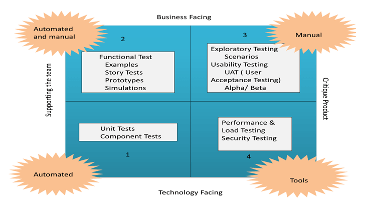 Nó chứa các trường hợp thử nghiệm theo hướng kinh doanh và được triển khai để hỗ trợ nhóm. Góc phần tư này tập trung vào các yêu cầu. Loại thử nghiệm được thực hiện trong giai đoạn này là