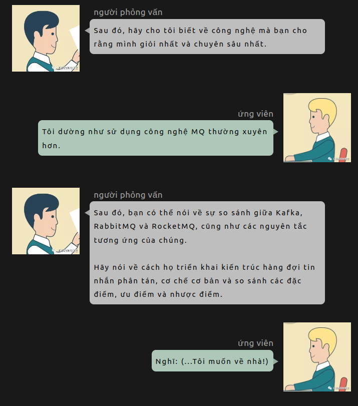 Kết quả là bạn này tự nói là MQ, nhưng thực tế hiểu biết về MQ rất nông cạn, những thứ sâu sắc đều không nói được, thì kết quả cuối cùng chắc chắn là khiến phỏng vấn viên rất khó chịu.