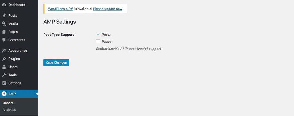 Hoặc bạn cũng có thể lực chọn AMP WordPress áp dụng vào trang hoặc post tùy chỉnh bằng cách truy cập vào WordPress dashboard và đi tới mục AMP > General: