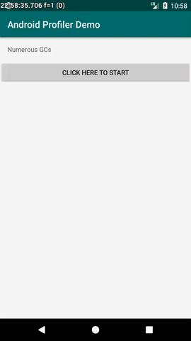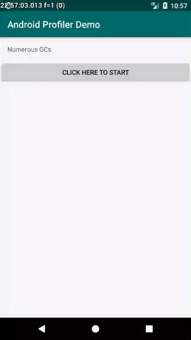 Để tái hiện vấn đề này, hãy chạy ví dụ Số lượng GC từ ứng dụng demo. Ví dụ này sử dụng RecyclerView để hiển thị hai hình ảnh bitmap thay thế: một hình ảnh bitmap lớn có độ phân giải 1000 x 1000 và một hình nhỏ hơn 256 x 256. Di chuyển RecyclerView và bạn sẽ thấy nhiễu loạn rõ ràng trong Trình tạo bộ nhớ và trải nghiệm người dùng chậm chạp trong ứng dụng di động.