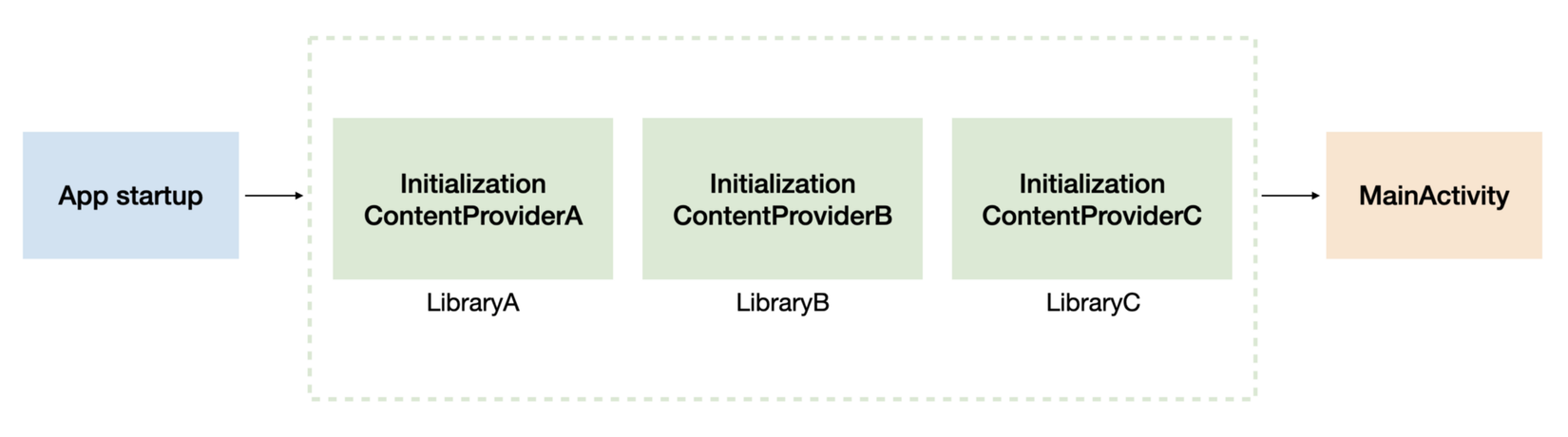 Thông thường, trong 1 ứng dụng Android, có thể sẽ sử dụng 1 số thư viện chạy các logic khởi tạo khi khởi động ứng dụng. Ví dụ như WorkManager và Lifecycle có khởi tạo khi ứng dụng được chạy. Người dùng luôn mong muốn việc khởi tạo các thành phần này nhanh nhất có thể, nhưng đôi khi việc có nhiều ContentProvider được khởi chạy có thể sẽ làm chậm thời gian khởi tạo của ứng dụng đi khiến cho trải nghiệm người dùng sẽ không được tốt. Do đó App Startup ra đời nhằm khắc phục tình trạng trên bằng cách thay vì khai báo các ContentProvider riêng lẻ cho các thành phần riêng lẻ khi khởi tạo thì App Startup cho phép bạn định nghĩa một single ContentProvider chung cho tất cả các thành phần. Điều đó sẽ cải thiện đáng kể thời gian khởi động ứng dụng.