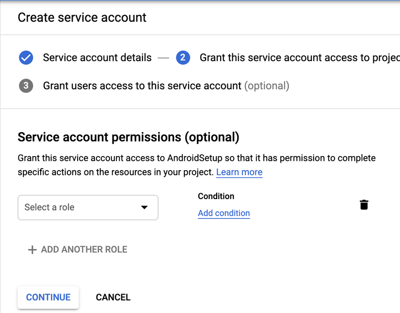 - Chọn role là Firebase App Distribution Admin