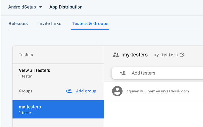 groups = "my-testers" // Tester group của dự án