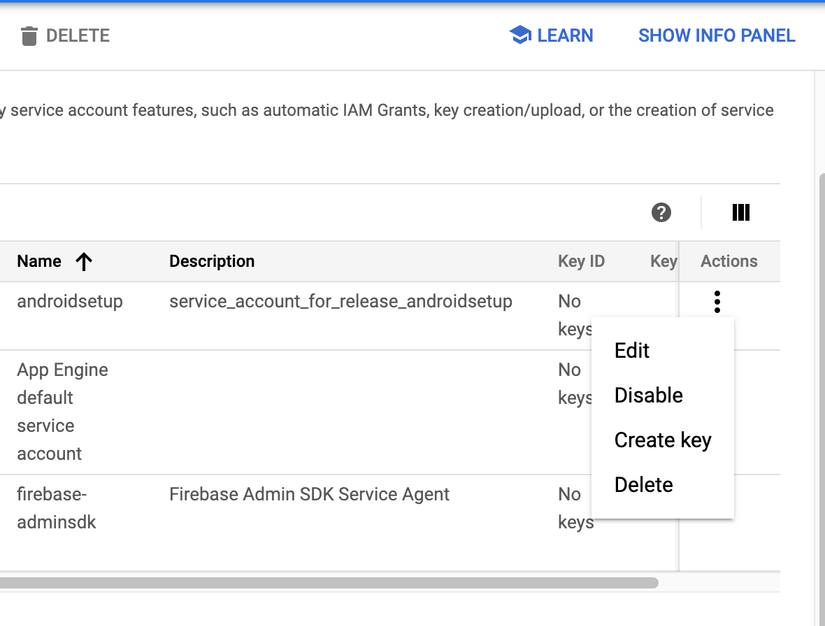 serviceCredentialsFile = "distribution/androidsetup-private-key.json" // file private key tạo ở bước 3.