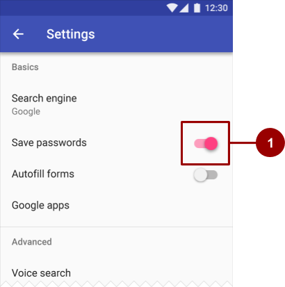 - colorAccent được sử dụng làm màu tô sáng cho một số thành phần View. Nó cũng được sử dụng cho các công tắc ở ví trí tắt - bật, FloatingActionButton, … Như hình ảnh dưới thì hình của thanh action bar sử dụng colorPrimary (màu chàm), thanh status bar sử dụng colorPrimaryDark (một màu chàm tối hơn), công tắc sử dụng màu colorAccent (là một màu hồng)