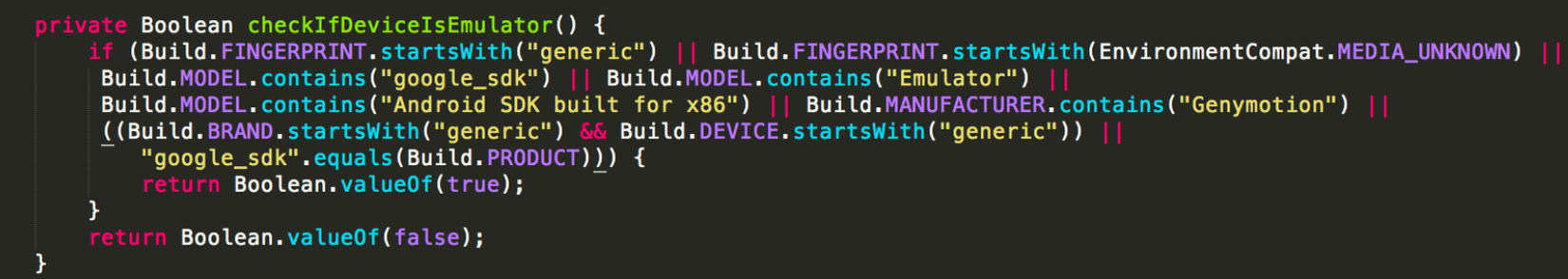 Cách Application detect ra thiết bị là emulator cũng muôn hình vạn trạng. Đây là một ví dụ: