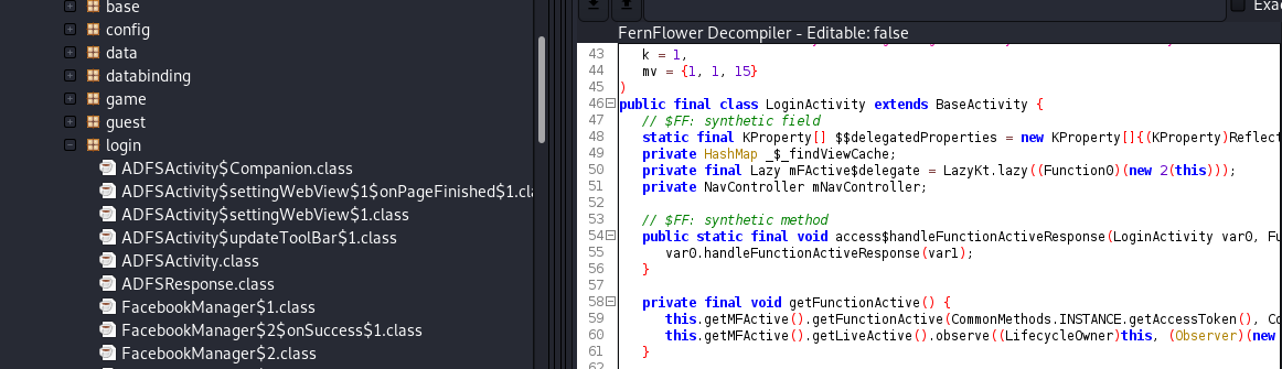 Nếu coi đây là 1 phần của "tiền pentest" ( thực tế nó không phải ở bước dựng được môi trường ), thì nó sẽ là phần khoai nhất. Đây là kỹ thuật được thêm vào khi sản phẩm chuẩn bị được publish. Nhằm giữ cho source code không thể đọc hiểu được bởi bên thứ ba. Một ví dụ cơ bản về việc Code Obfuscation của một ứng dụng liên quan tới TIỀN ( mình đã đổi tên ứng dụng ):
