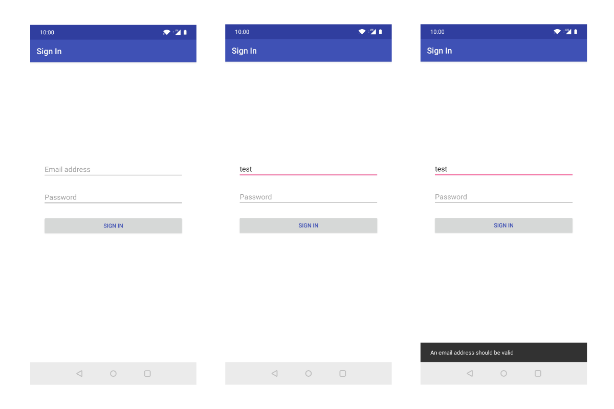 R.string.signIn) - Thông báo "An email adress shoud be valid" cần phải được hiển thị (id: