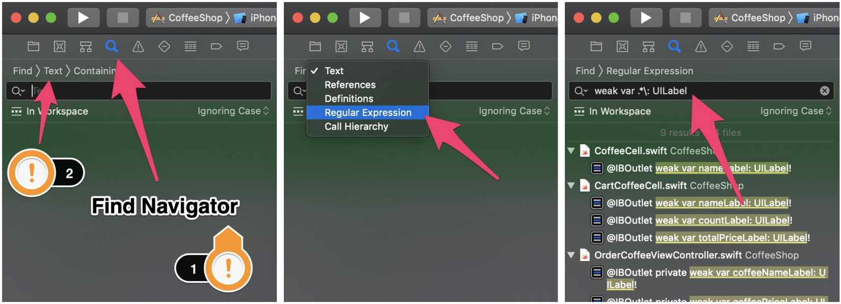 Reference: https://medium.com/flawless-app-stories/7-useful-tips-and-tricks-for-xcode-52182ac1dfa1