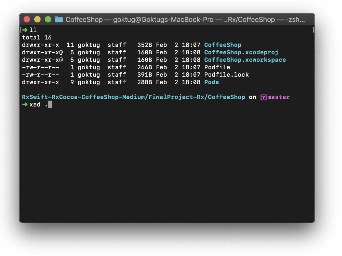 Chúng ta có thể mở những Xcode dự án từ Terminal. Nếu chạy lệnh xed. trong thư mục index của dự án, nó sẽ mở dự án trực tiếp.