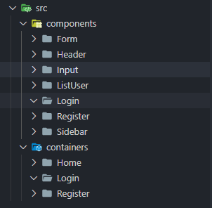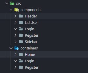 Với cấu trúc folder như thế này, có vấn đề sẽ nãy sinh đó là ở component Login hay Register đây là 2 form, thì nó có cùng những features như submit, reset,… Ngoài ra, thông thường style của 2 form này là tương đối giống nhau về mặt cấu trúc, chưa kể thêm style của các thẻ