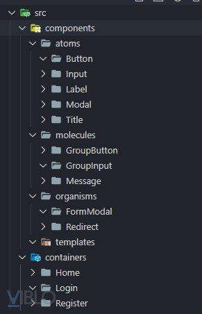 Với việc sử dụng Atomic design chúng ta tạo một cấu trúc thư mục: rõ ràng hơn, được phân chia. Ở ví dụ trên có ít components nên chỉ cần vậy là đủ để chúng ta có thể tạo nên UI mà mình mong muốn.