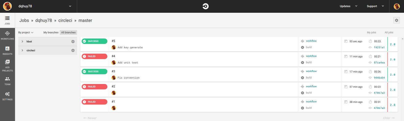 Cuối cùng ta lưu lại và đẩy lại lên repository của bạn rồi kiểm tra bên CircleCI sẽ thấy bản build mới nhất được chạy với tool vừa cài đặt: