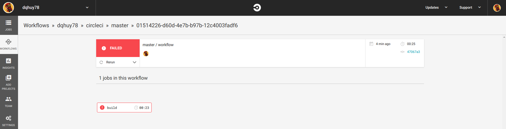 Sau khi đã thêm các nội dung như trên, ban lưu lại sau đó tiếp tục đẩy lên repository và kiểm tra trên CircleCI sẽ có kết quả như sau: