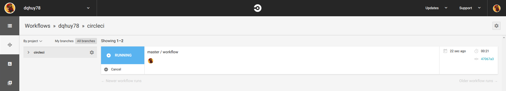 Nếu config đúng thì bạn sẽ thấy bản build đầu tiên của bạn được chạy trên CircleCI như sau: