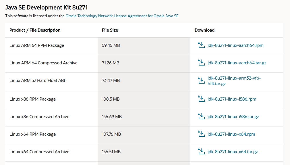 Bạn hãy tải xuống file có đuôi tar.gz phù hợp với hệ điều hành của máy bạn nhé, ví dụ ở đây máy mình là linux x64, mình sẽ tải file có tên jdk-8u271-linux-x64.tar.gz