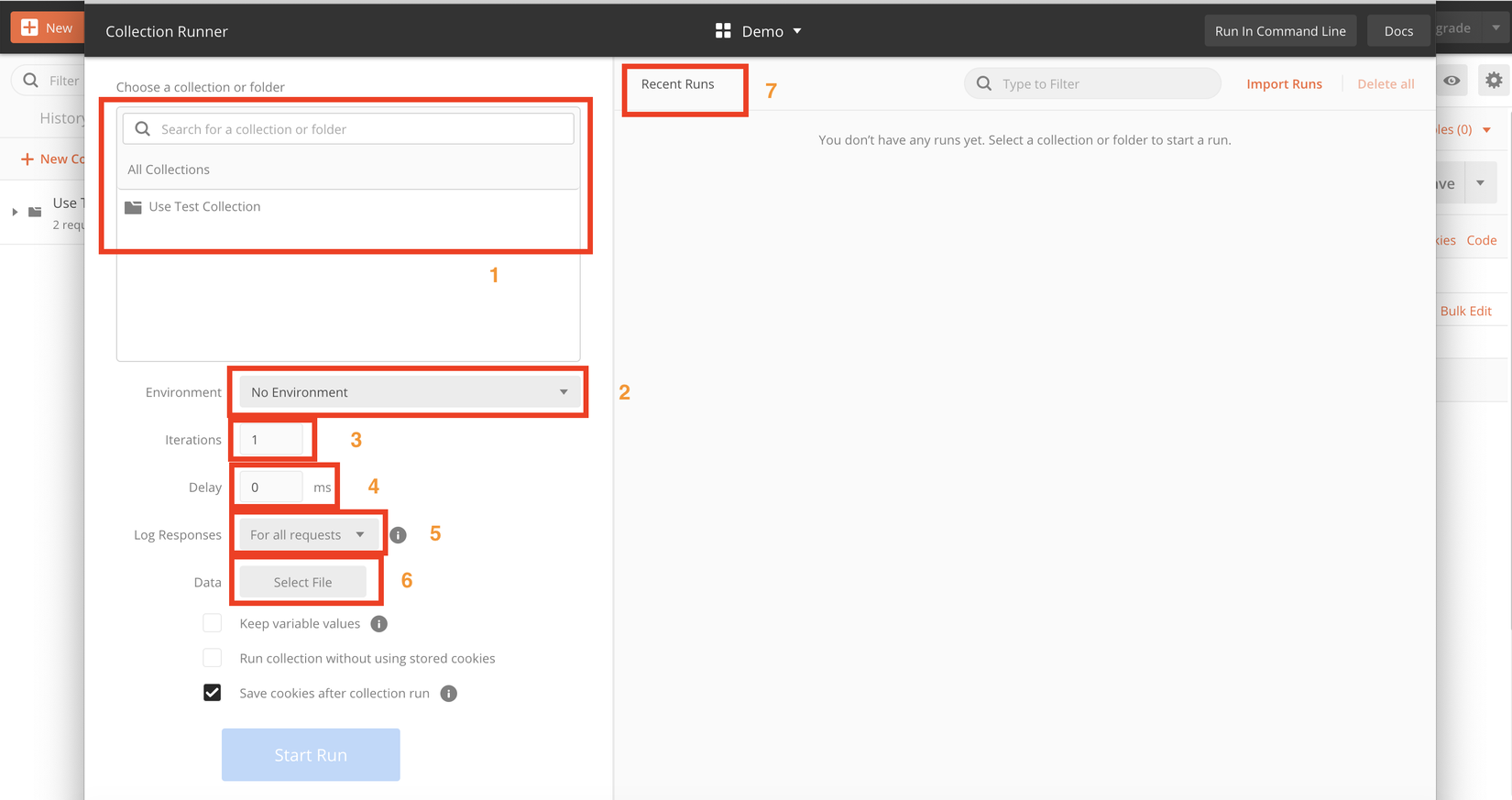 Bước 2) Trang Collection Runner sẽ xuất hiện như bên dưới