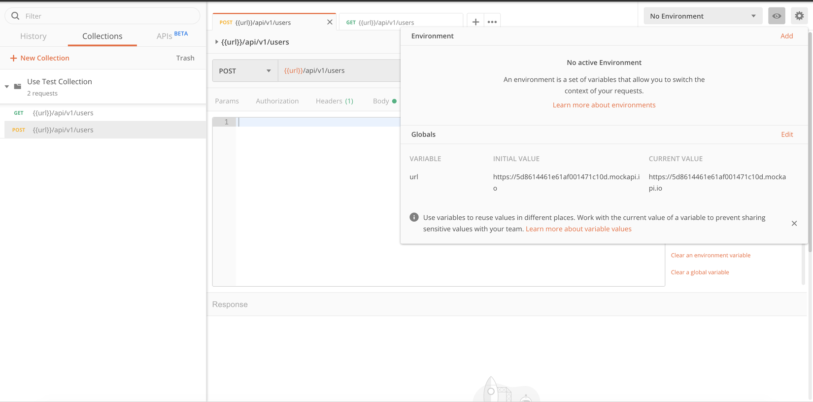 - Vì chúng ta chưa viết test case cho Post Request, nên sẽ có messege rằng "This request does not have any tests"