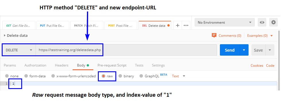 - Tạo một yêu cầu mới và lưu nó trong collection của bạn dưới dạng "DELETE data".