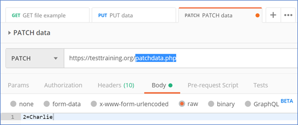 - Lưu ý rằng giống như trong ví dụ PUT request ở trên, PATCH sử dụng văn bản thuần cho dữ liệu thông điệp.