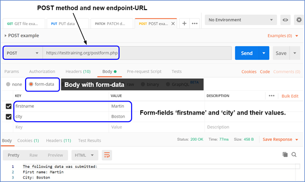 - Tạo một yêu cầu mới với POST làm phương thức HTTP và sử dụng định dạng "form-data" của cơ sở dữ liệu cho request body.