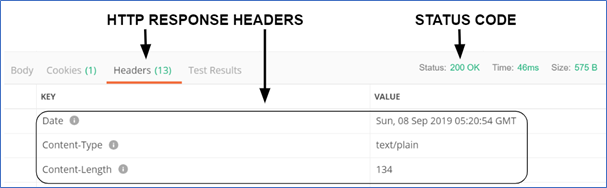 - Trong phần phản hồi, Postman cũng sẽ hiển thị mã trạng thái HTTP (200 OK) và bên cạnh đó là thời gian thực hiện cho yêu cầu (46 mili giây), cũng như kích thước phản hồi (575 Byte):