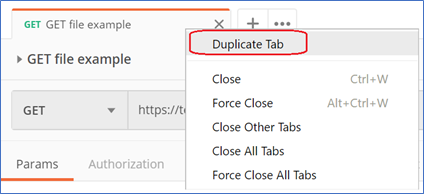 - Phương pháp khác để tạo một request mới mà không cần phải nhập lại tất cả đầu vào là click chuột phải vào tab của một request hiện có và chọn "Duplicate Tab" từ menu. Hãy làm điều này ngay bây giờ và thay đổi phương thức yêu cầu thành "PUT".
