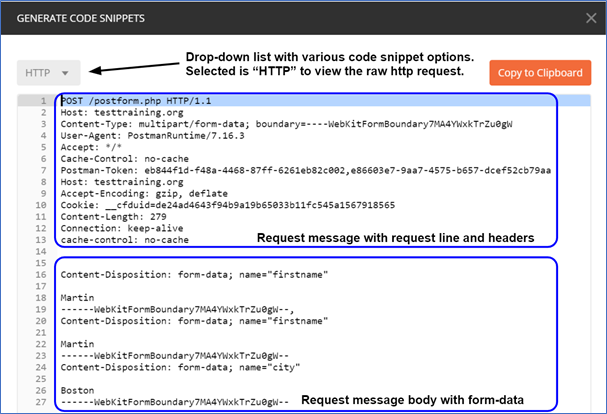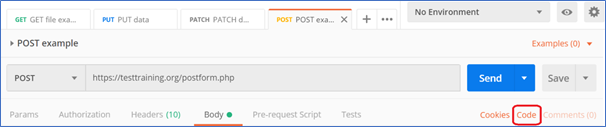 * Ngoài ra còn có các tùy chọn để cho phép Postman tạo các đoạn mã cho các ngôn ngữ lập trình khác nhau như PHP, Java, Python...