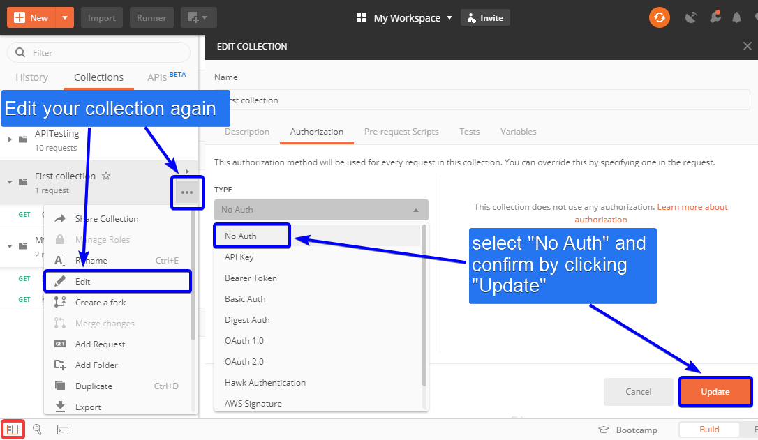 Trong Postman, bạn có thể thiết lập các biến xác thực cần thiết và cài đặt riêng cho mỗi yêu cầu. Nhưng khi bạn đang kiểm tra API và có một bộ sưu tập, bạn nên thực hiện cài đặt chung cho tất cả các yêu cầu trong bộ sưu tập.