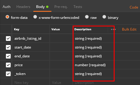 Điền vào phần Param hoặc Body giống như điền API vẫn điền trước đây nhưng khi viết API Docs, lưu ý: KHÔNG điền phần Value.