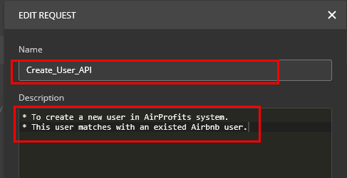 Tên của API chính ta tên chúng ta đặt cho từng Request. Cách Edit