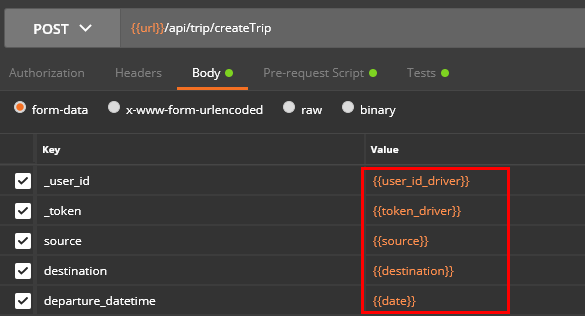 Ví dụ: Có 1 API tạo ra 1 chuyến đi giống kiểu Grab và Uber, gồm các param dưới đây.