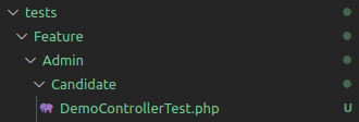 Lưu ý là thư mục được tạo ra cần có cấu trúc đường dẫn tương tự với controller(để dễ tìm file test, hoàn toàn có thể cấu trúc đường dẫn khác với controller). Và tên file test phải có hậu tố Test phía sau.