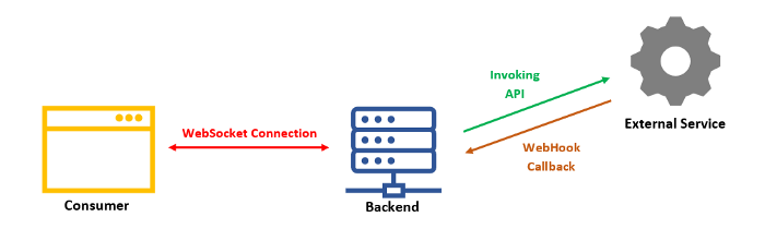 WebHooks cung cấp một phương pháp để giải quyết các vấn đề khó khăn của WebSockets bằng cách cung cấp một cơ chế ngắt kết nối để nhận được thông điệp phản hồi từ phía cung cấp dịch vụ.