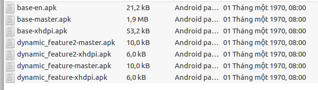 Base apk: APK này chứa code và resource mà tất cả các APK phân tách khác có thể truy cập và cung cấp chức năng cơ bản cho ứng dụng của bạn. Khi người dùng download ứng dụng của bạn chắc chắn có file APK này