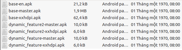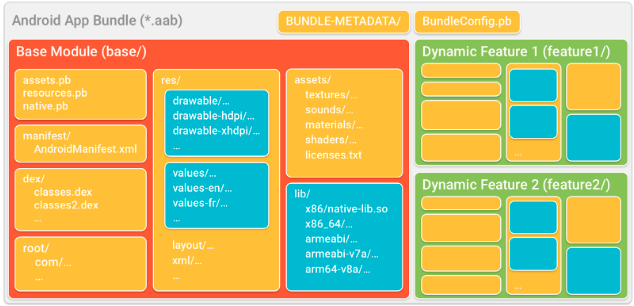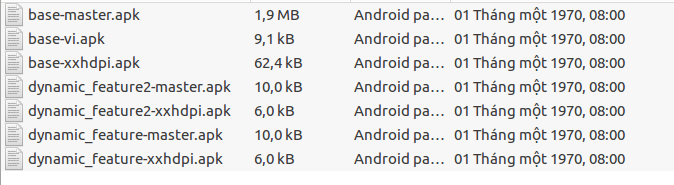 - Dynamic feature APKs: Mỗi APK này chứa code và resource không bắt buộc khi ứng dụng của bạn được cài đặt lần đầu, nhưng có thể được tải xuống và cài đặt sau.