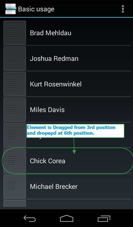 //It will hold tap on 3rd element and move to 6th position and then release tap.