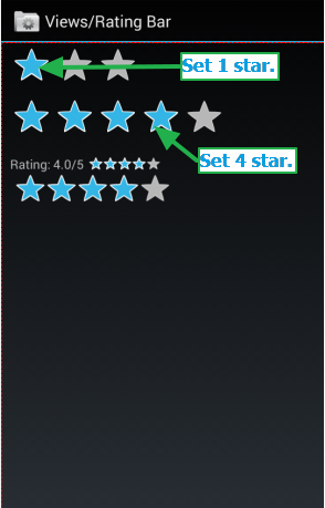 Mở Star Rating Bar từ API Demos app: Home -> Views -> Rating Bar.
