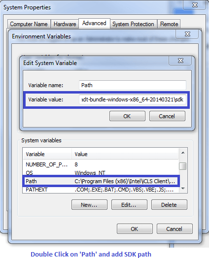 Bây giờ, từ 'Biến môi trường' bật lên, 'nhấp đúp chuột vào' Đường dẫn 'và đặt biến ANDROID_HOME trỏ đến thư mục SDK của bạn. Trong đường dẫn nối thêm toàn bộ đường dẫn thư mục SDK.