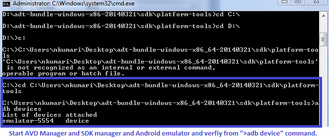 Mở Dấu nhắc lệnh và điều hướng đến thư mục \ platform-tools \ của SDK Android (Ví dụ: D: \ adt-bundle-windows-x86_64-20130514 \ sdk \ platform-tools).