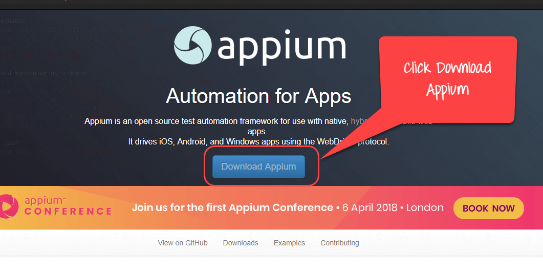 Truy cập http://appium.io/ và nhấp vào Tải xuống Appium.