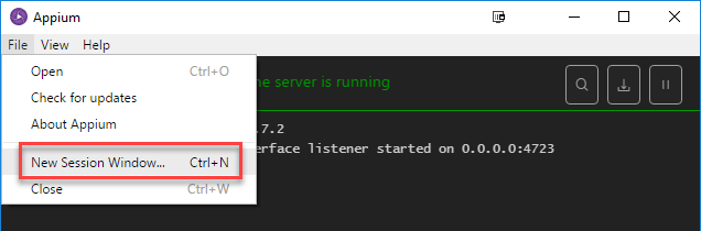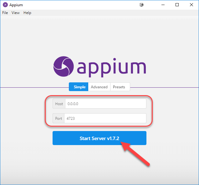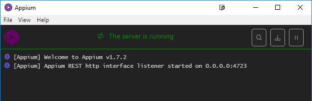 Tải xuống và khởi động máy chủ Appium của bạn với Địa chỉ IP mặc định 0.0.0.0 và cổng 4725.